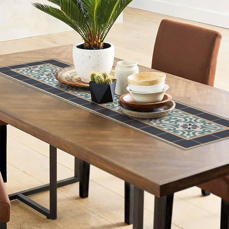 Chemins de table en vinyle avec impression numérique tout en couleur. Habillez et protégez votre table ou votre bureau des taches et des égratignures ou donnez une touche de couleur à tout meuble avec nos dessins uniques. En plus de protéger la surface des bosses, ils empêchent le glissement et sont faciles à nettoyer. Choisissez entre des impressions et des textures hydrauliques, géométriques. Nos chemins de table sont assortis à nos sets de table et à nos sous bock.
