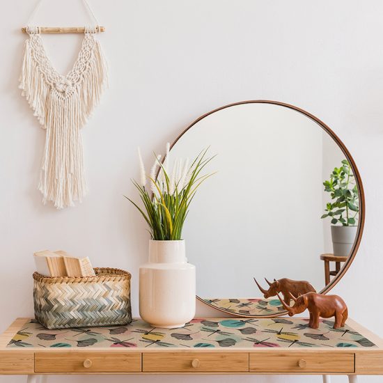 Chemins de table en vinyle avec impression numérique tout en couleur. Habillez et protégez votre table ou votre bureau des taches et des égratignures ou donnez une touche de couleur à tout meuble avec nos dessins uniques. En plus de protéger la surface des bosses, ils empêchent le glissement et sont faciles à nettoyer. Ils fonctionnent également très bien comme un tapis de souris d’ordinateur. Choisissez entre des impressions et des textures hydrauliques, géométriques. Nos chemins de table sont assortis nos sets de table et à nos sous bock.
